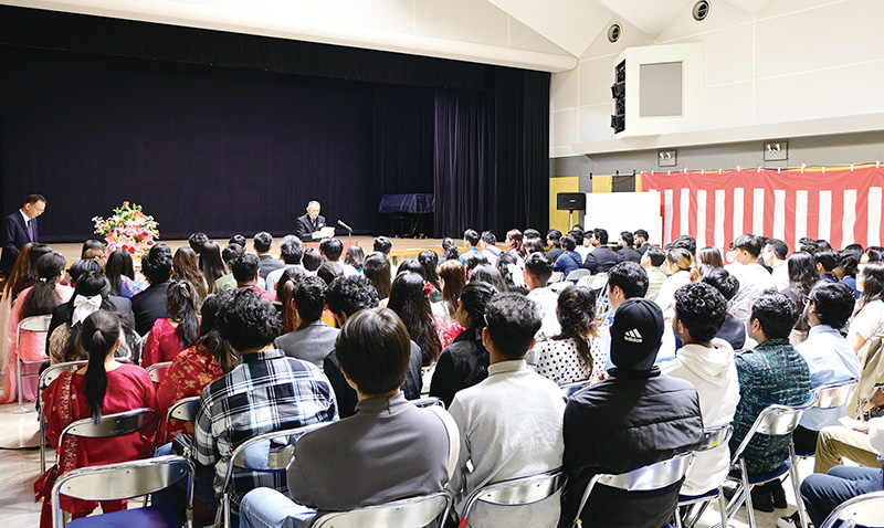4月に小田北生涯学習プラザで開かれた入学式では、華やかな民族衣装をまとった新入生が、在校生が待ち受ける会場に並んで入場。ミャンマーから来た新入生代表のライさんが「日本で日本語を学ぶ夢が叶いました。AMA日本語カレッジの生徒として責任ある行動をしていきます」と挨拶すると、在校生たちが次々とステージに上がって、歌や踊りで入学を祝う。「卒業式はもっと盛り上がったんですよ。その後の進路は大学や専門学校への進学がほとんどですね」と赤井校長が教えてくれた。